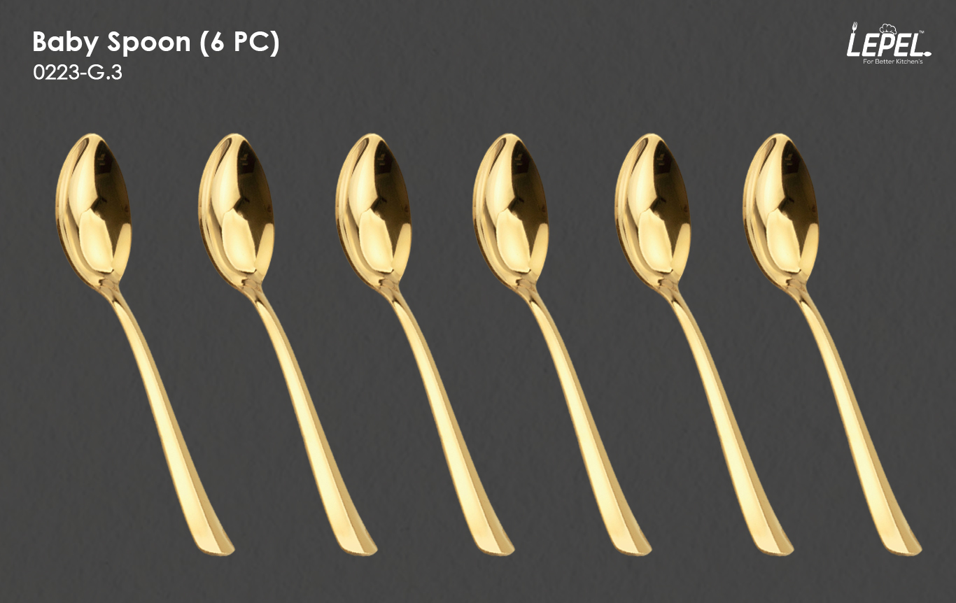 The Regular Gold Spoon brings everyday elegance to your dining table. Crafted with a polished finish, the Table Spoon and Table Fork offer durability and comfort for daily meals, while the Dessert Spoon and Dessert Fork add refinement to sweet indulgences. For little ones, the Baby Spoon and Baby Fork are designed with gentle edges for safe dining. Completing the set, the Tea Spoon and Tea Fork bring a delicate touch to tea time, combining style with practicality in every piece.