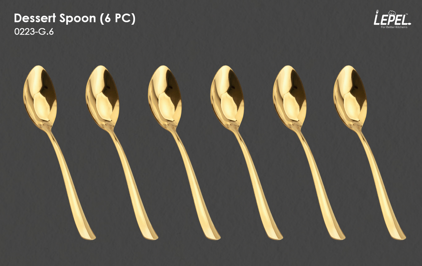 - Dessert Spoon – Smooth finish, perfect for cakes and puddings.